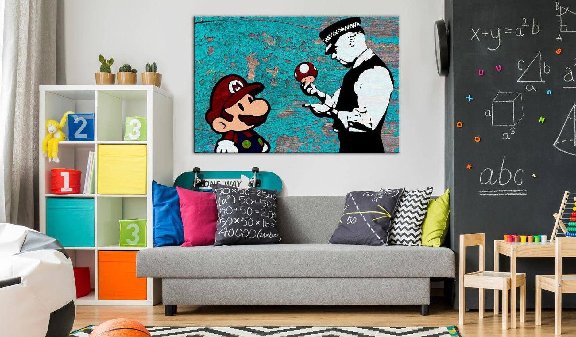 Stretched Canvas Street Art - Banksy: Mario On Wood