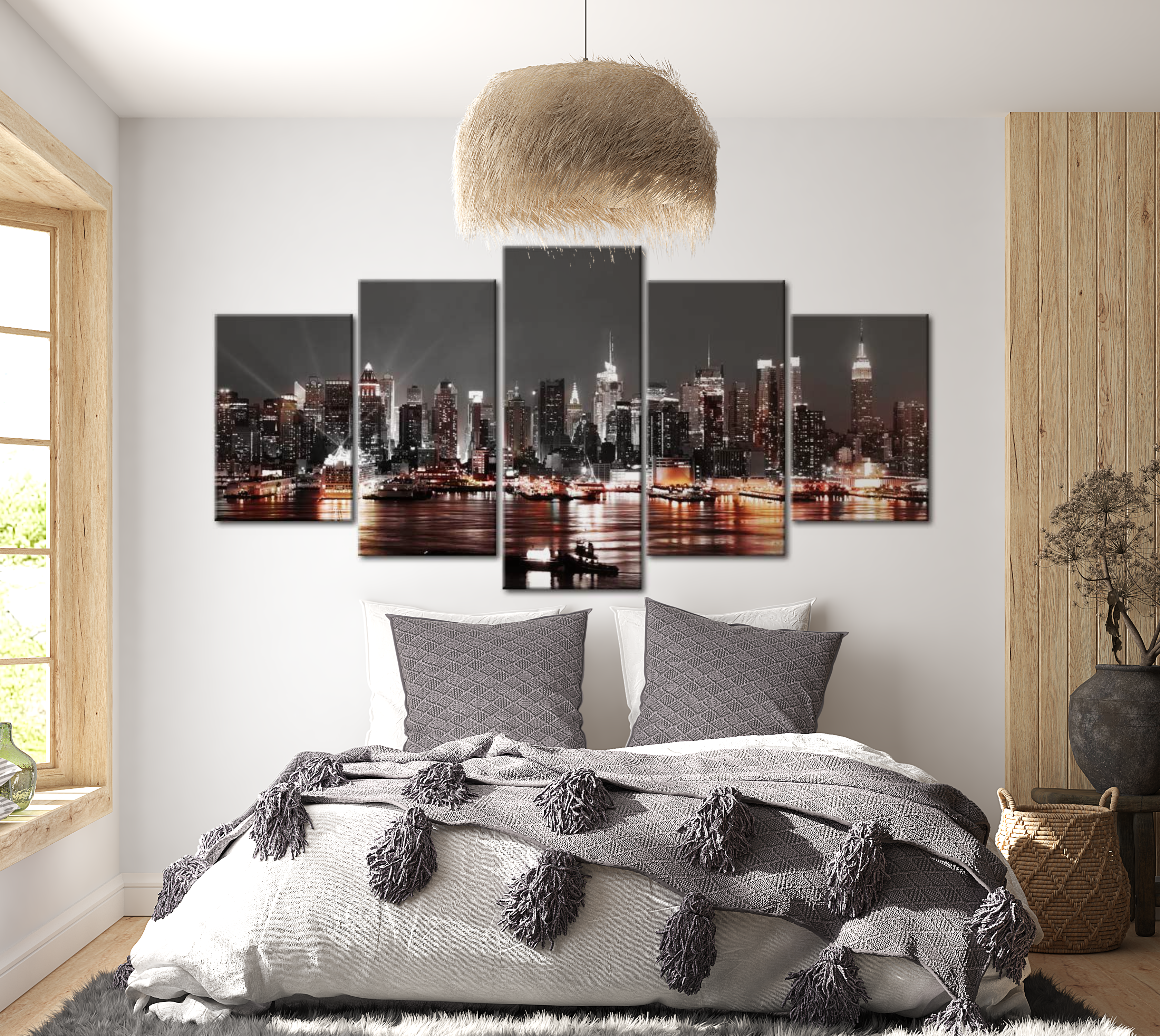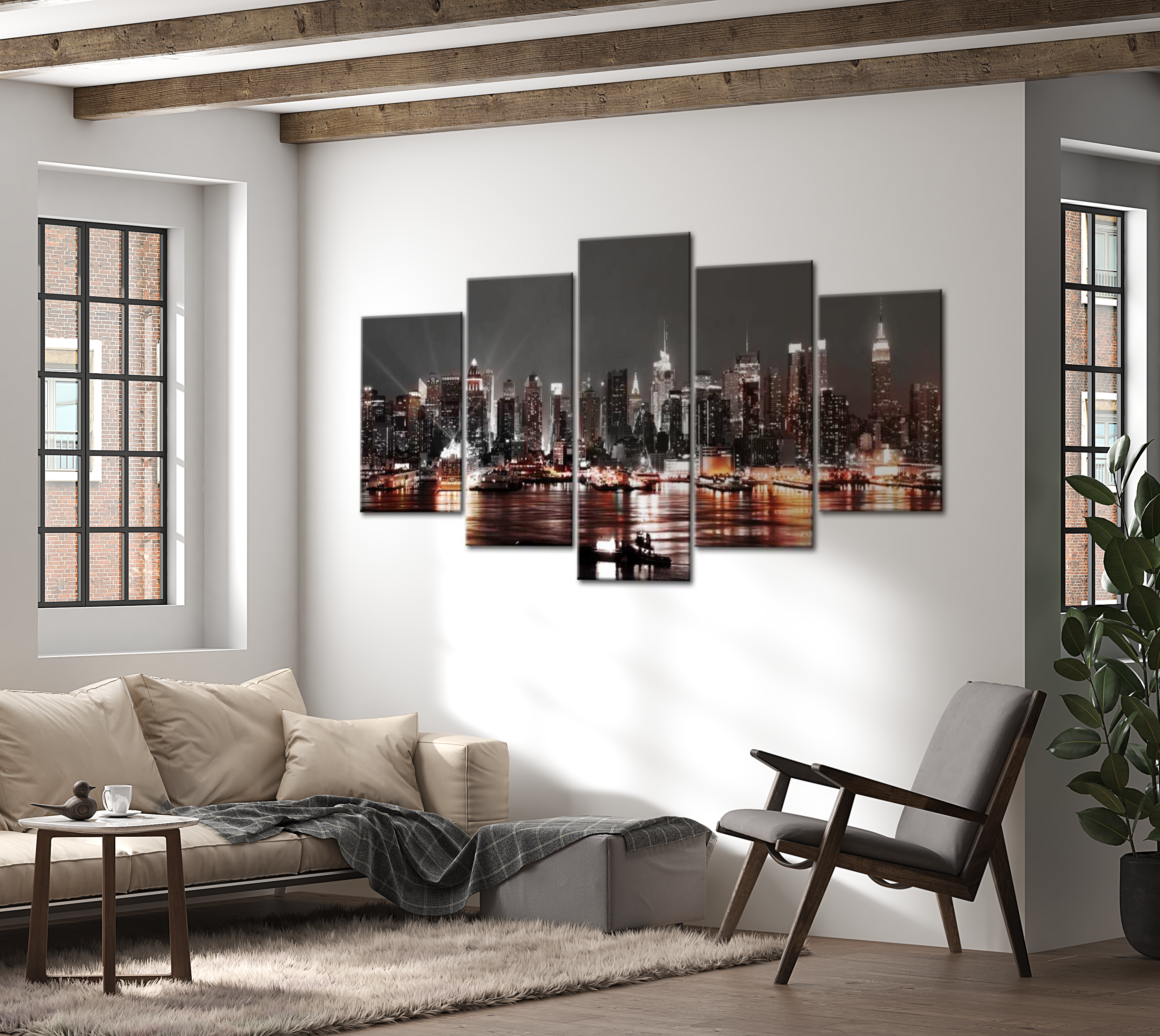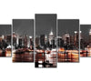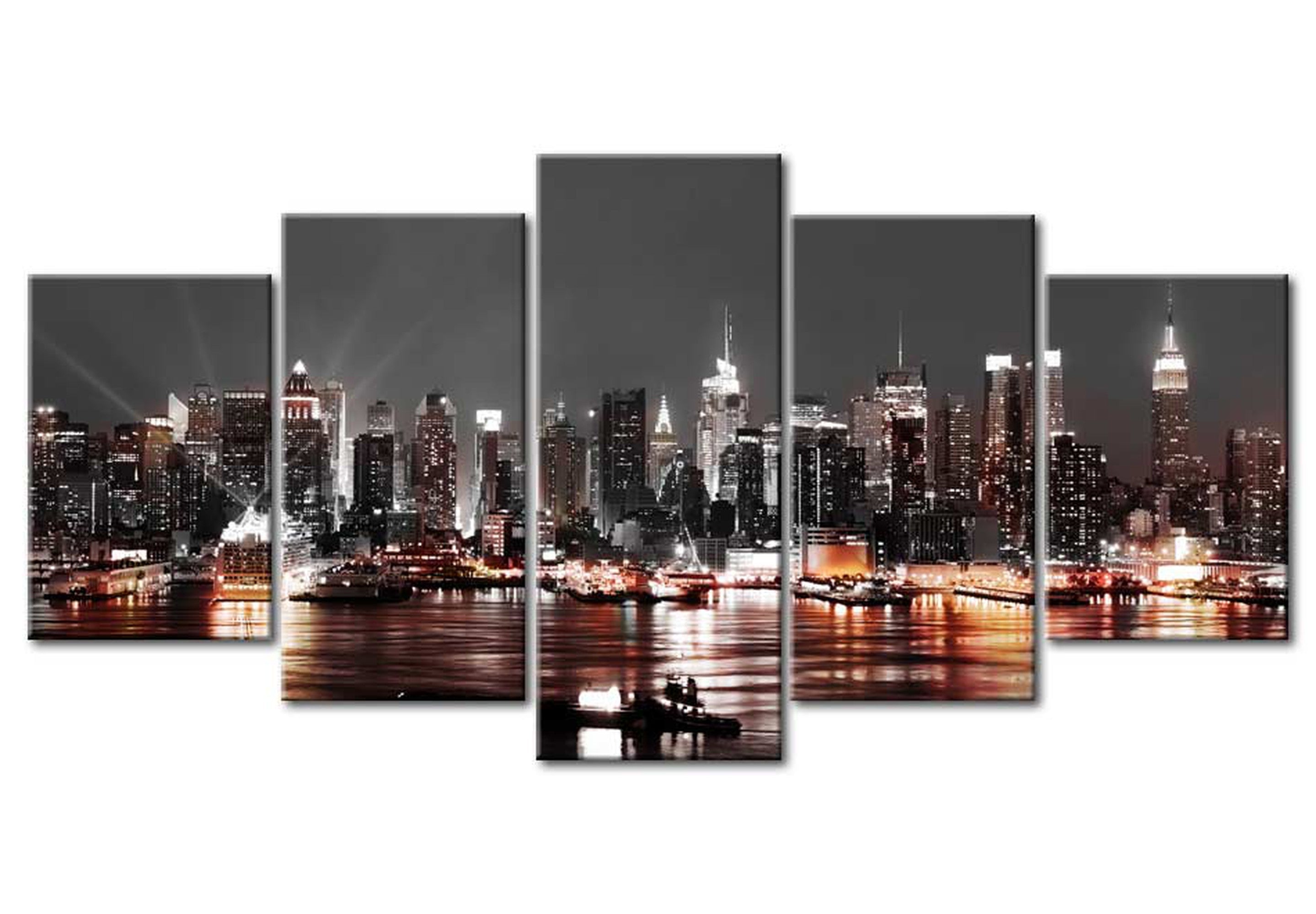 Stretched Canvas Wall Art - NYC Sparkling Lights - 5 Pieces